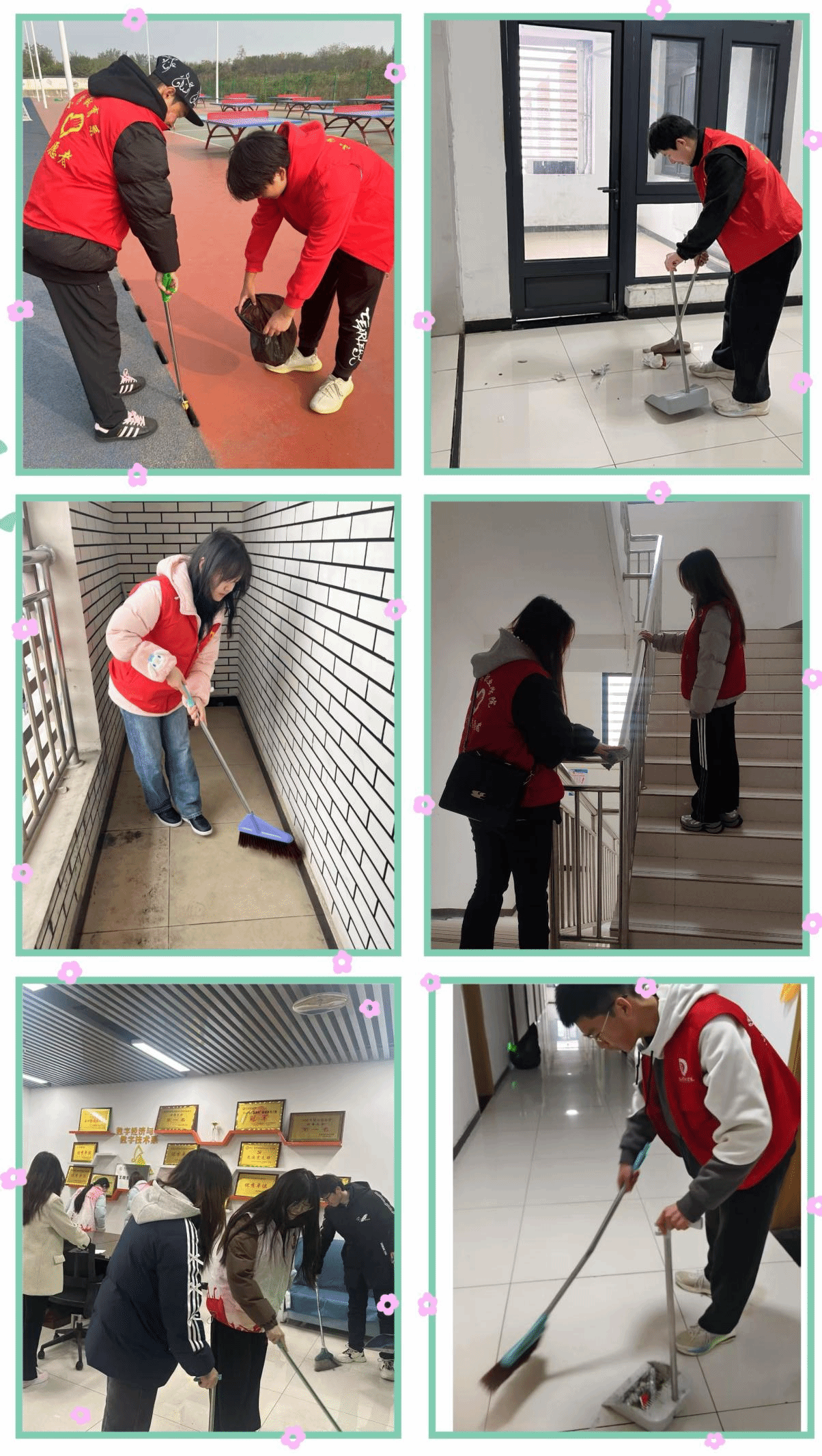 校系志愿服务队在宿舍楼宇、校园操场、教学楼、实训楼等公共区域集中开展爱国卫生运动,进行了卫生死角清扫,桌面涂鸦清理。志愿者们不怕脏、不怕累,以实际行动呼吁更多的同学们从身边点滴做起,维护校园环境卫生,创建和谐文明校园,争做时代新风尚的倡导者、传播者和实践者。