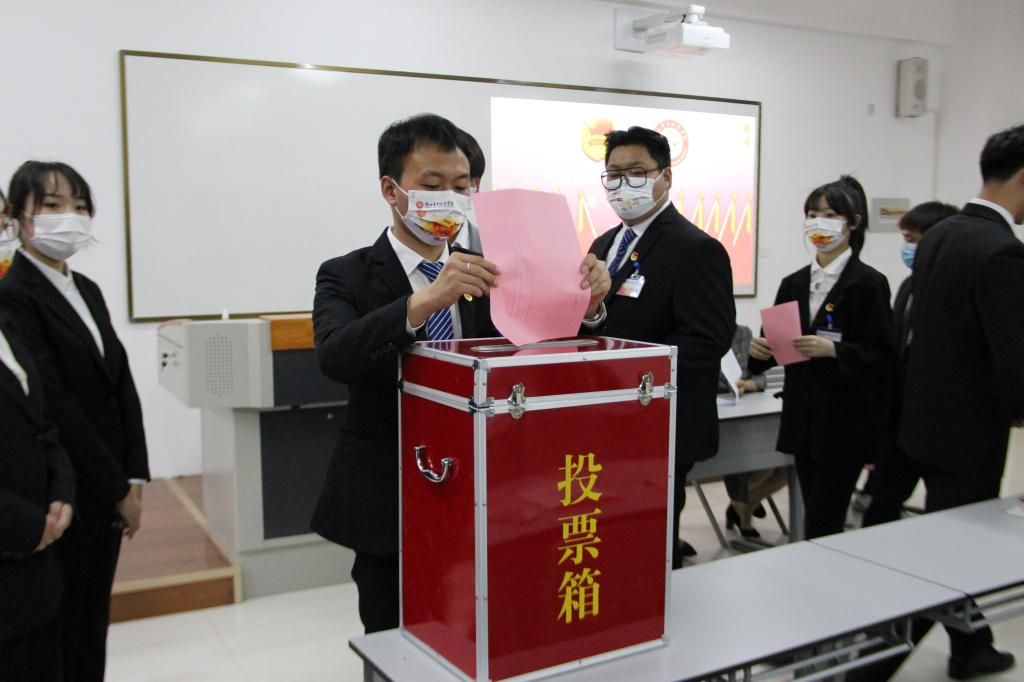在随后举行的第一届委员会第一次全体会议上,雷蕾、许志豪、景苗霞、孔维辉、赵晨曦5位同学经投票选举,当选为学院第一届学生会主席团成员。