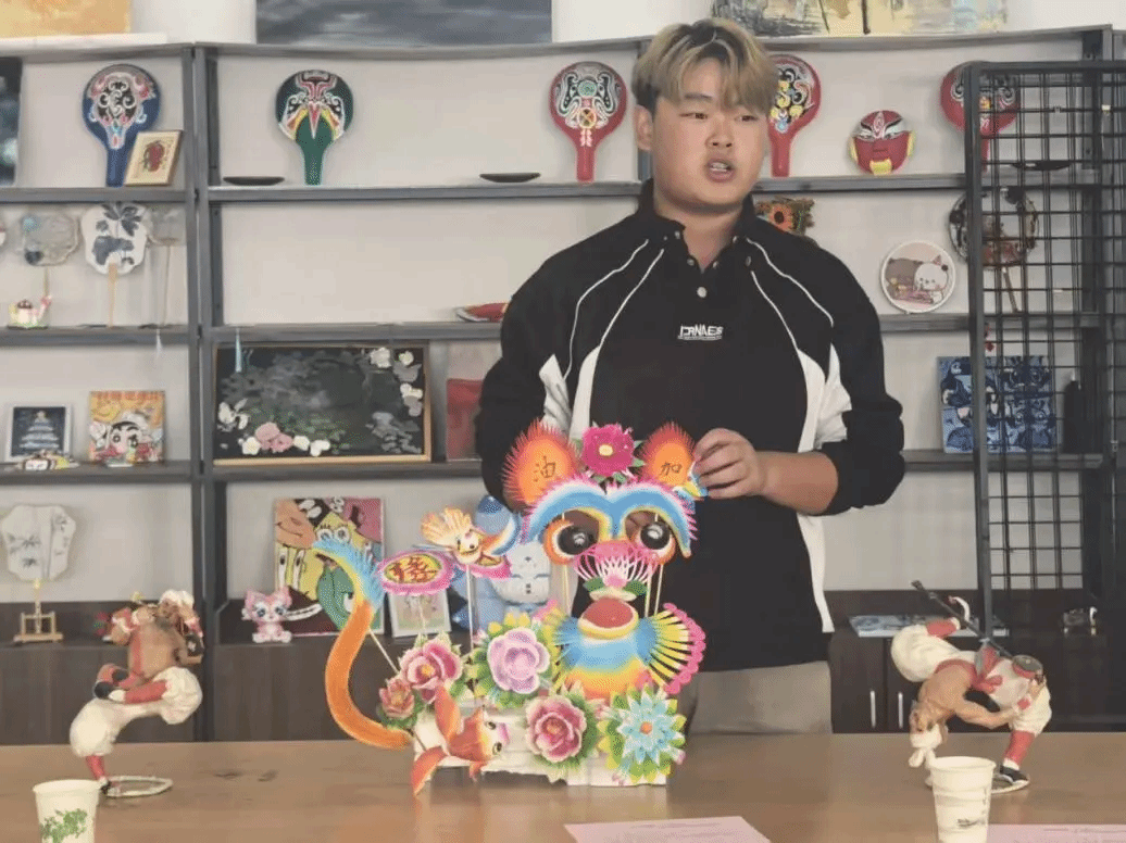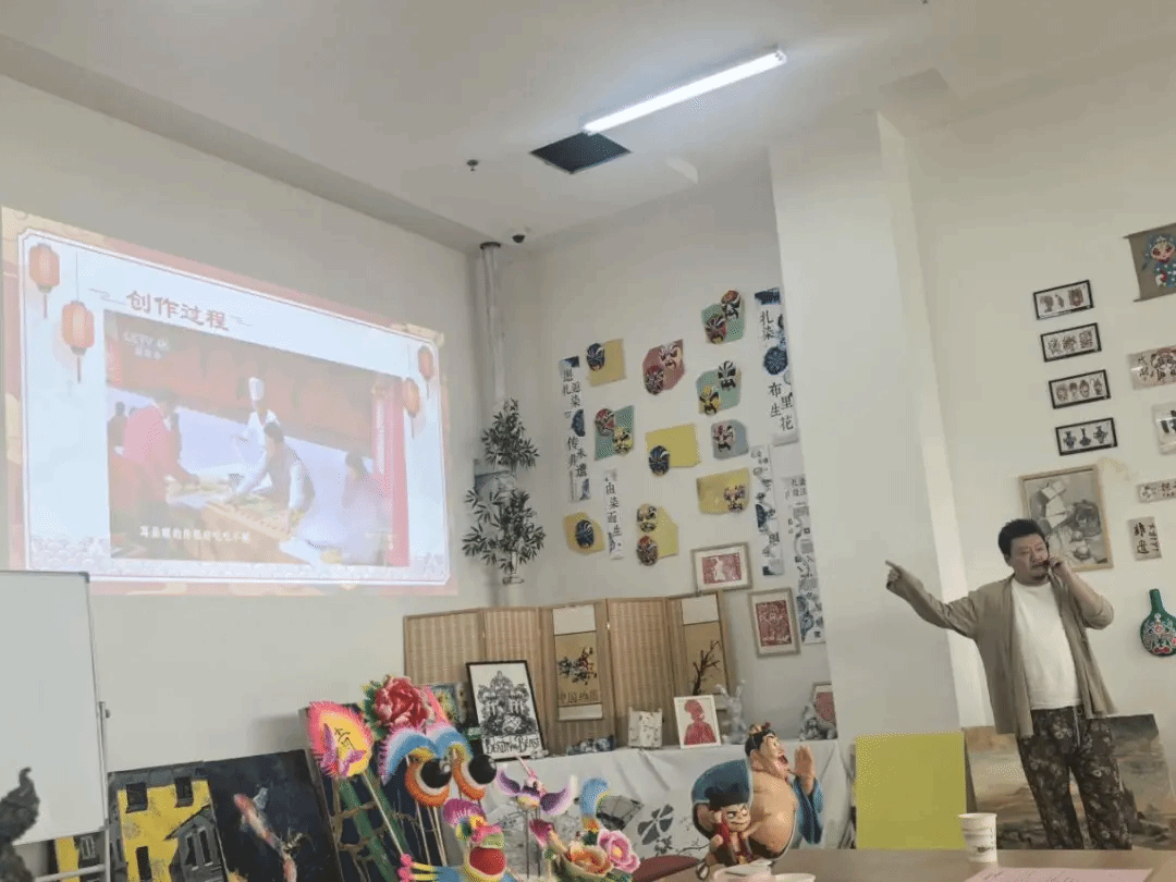 活动伊始,张倍源大师便以一组构思精妙、栩栩如生的面塑作品吸引全场目光。他特别分享了2024年龙年央视春晚的难忘经历——不仅为节目《别开生面》设计专属面塑形象,更亲身参与演出。这些作品将传统面塑技艺与当代青年生活巧妙融合,以创新表达与精湛手艺征服全国观众。生动的讲述让同学们真切感受到:非遗并非束之高阁的“老物件”,而是能与青春共振、与时代共鸣的活态文化,现场热情瞬间被点燃。