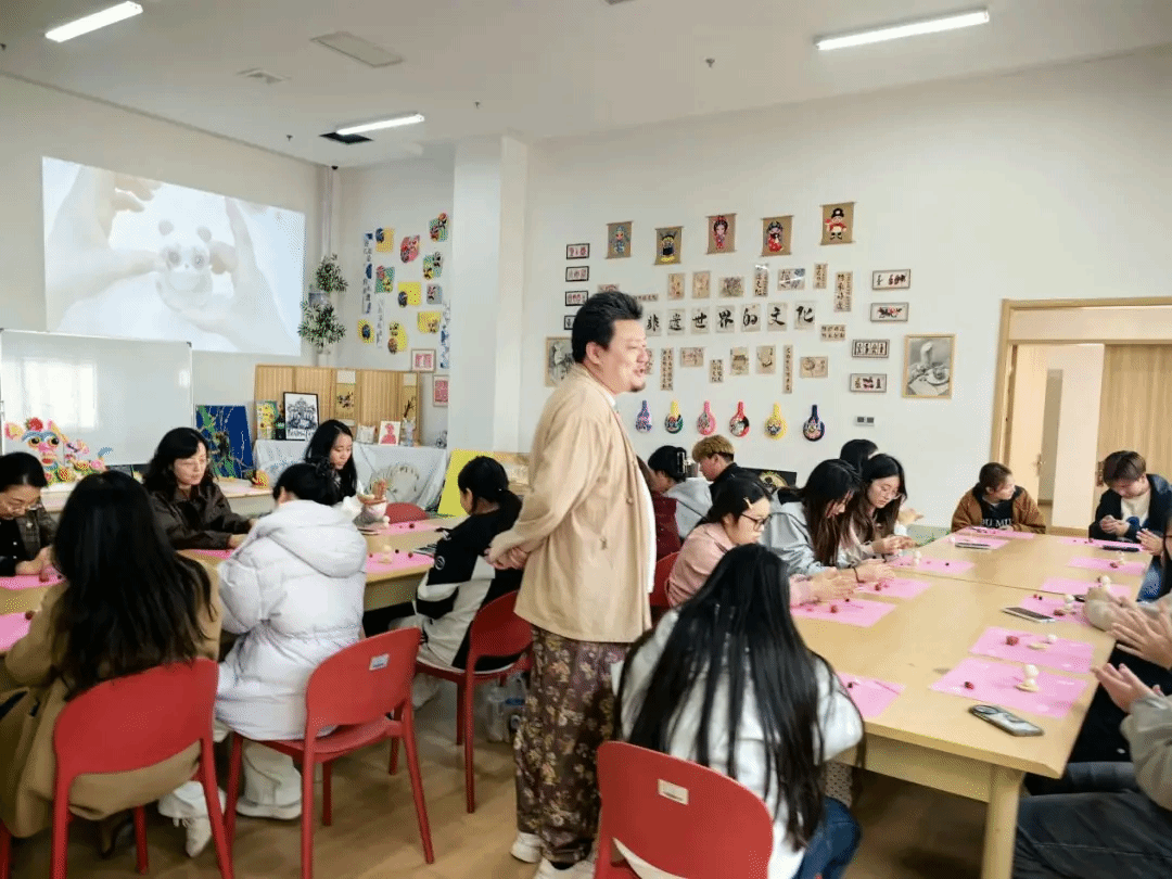 深度交流:体验环节之外,张倍源大师还与非遗薪传社成员雷雨田等同学展开深度交流。大家围坐一堂,围绕“面塑与面花的区别”、“面塑配方工艺与保存方法”、“造型风格的历史演变”等话题热烈探讨,更就“面塑在当代的创新发展路径”交换见解。张大师结合自身数十年创作经历,分享如何从传统民俗中汲取养分、从日常生活中捕捉灵感,让同学们对非遗传承有了更深刻的理解。“这次交流不仅学会了面塑技巧,更真正爱上了这门既古老又年轻的艺术。”有社员感慨道,心中也悄然萌发了投身非遗传承的初心。