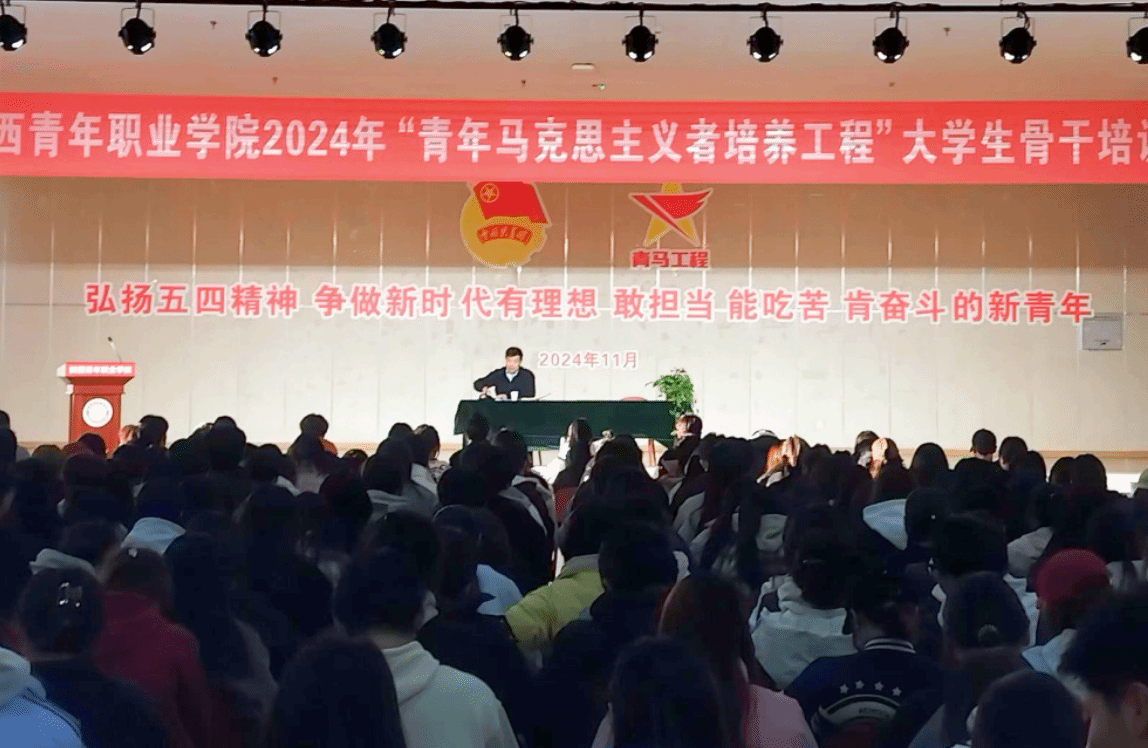 11月29日,学校2024年“青马工程”大学生骨干培训班开班仪式暨首场报告会在活动中心举办。党委书记张建宽为学员做首场主题报告,党委副书记梁菀华、学工部部长祁志、各系党总支副书记、团学工作负责人以及400余名骨干学员参加。校团委书记王珊主持开班仪式。